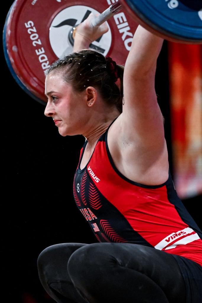 里夫斯是巴黎奧運會女子71公斤級冠軍。本次世錦賽她升到了77公斤級。比賽中,她以抓舉123公斤、挺舉155公斤和總成績278公斤連刷三項世界紀(jì)錄,實力碾壓其他29位參賽者。