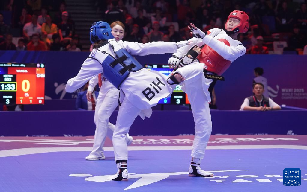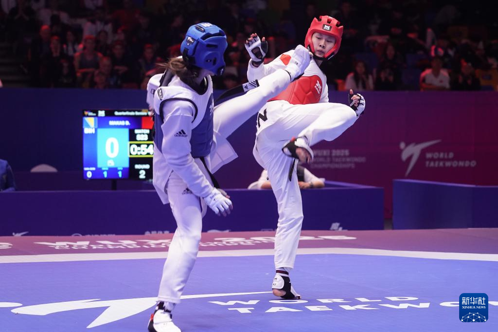 ??當(dāng)日,在江蘇無(wú)錫舉行的2025年世界跆拳道錦標(biāo)賽女子46公斤級(jí)比賽中,中國(guó)選手王詩(shī)怡獲得季軍。