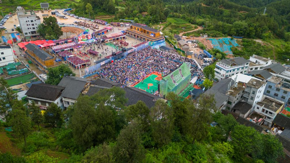 今年7月20日,一年一度的臺盤村“六月六”吃新節(jié)籃球賽在臺盤村“村BA”球場完賽。賽事設(shè)置了公開組、村村組、中年組、少年組和女子組等組別,來自全國各地的195支球隊(duì),在10天的賽期內(nèi),給當(dāng)?shù)厝罕姾陀慰蛶砹藬?shù)百場精彩比賽。