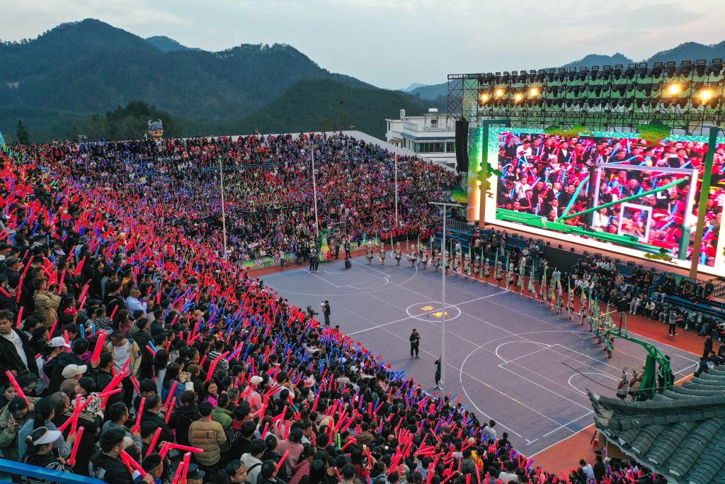 觀賽體驗(yàn)感也在不斷提升。臺盤村村委會(huì)主任岑江龍介紹,“村BA”火爆出圈后,當(dāng)?shù)夭粌H對籃球場、停車場、公廁等基礎(chǔ)設(shè)施進(jìn)行了改造升級,還將民族文化深度嵌入籃球比賽,在中場休息時(shí)穿插開展苗族飛歌等非遺表演,讓觀眾沉浸式體驗(yàn)民族風(fēng)情。今年7月,室內(nèi)籃球場的建成投用,讓臺盤村具備了在雨天辦賽的能力。