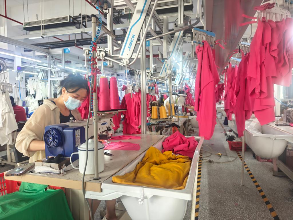 走進(jìn)位于赫山區(qū)泥江口鎮(zhèn)的益陽市湘銀之舞服飾有限公司車間,五顏六色、令人眼花繚亂的生產(chǎn)線一片忙碌。工人在智能裁床、智能吊掛系統(tǒng)等現(xiàn)代化設(shè)備的幫助下,最快幾十秒就可以完工一件廣場舞服。