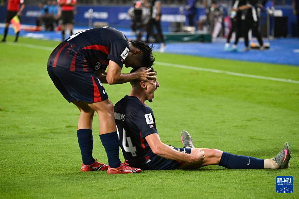 11月5日,柔佛新山隊(duì)球員奧斯卡·阿里巴斯(右)在進(jìn)球后慶祝得分。