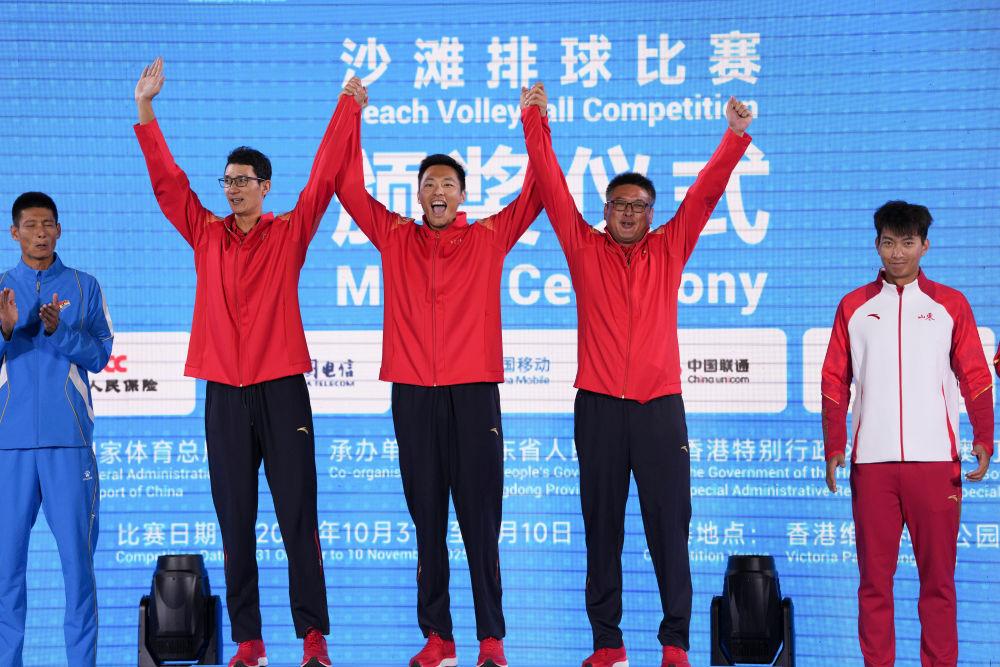 新華社香港11月10日電(謝妞 曹奕博)10日,第十五屆全運會決出沙灘排球男子組金牌,江蘇一隊的吳佳欣/周朝威在金牌賽中2:0戰(zhàn)勝遼寧一隊的李焯新/薛濤,奪得冠軍。