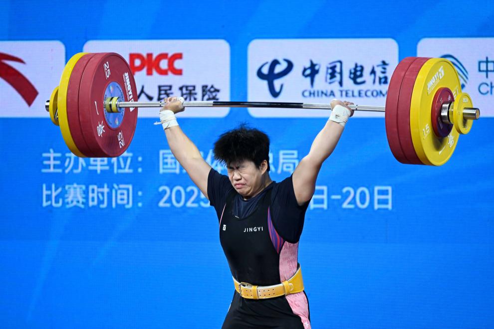 11月13日,福建隊選手廖桂芳在挺舉比賽中。新華社記者 楊晨光 攝