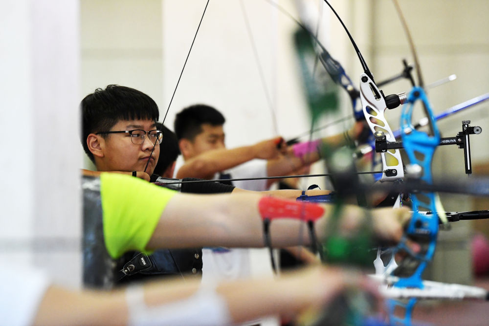 2020年6月3日,濟(jì)南市體校學(xué)生李夢麒在進(jìn)行射箭訓(xùn)練。新華社記者 王凱 攝