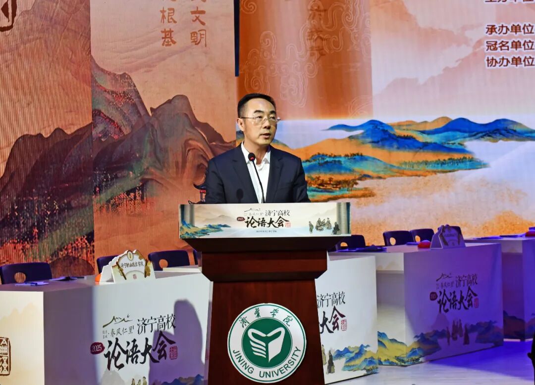 濟(jì)寧市委宣傳部副部長(zhǎng)、網(wǎng)信辦主任張猛在致辭中指出,2025濟(jì)寧高校論語(yǔ)大會(huì),是一場(chǎng)固本培元的傳承盛會(huì)、與時(shí)偕行的發(fā)展盛會(huì)、啟迪未來(lái)的青春盛會(huì)。濟(jì)寧與各高校攜手打造了“論語(yǔ)大會(huì)”特色品牌,通過(guò)“網(wǎng)信-網(wǎng)媒-高?!甭?lián)動(dòng),推動(dòng)廣大青年群體增強(qiáng)文化自覺(jué),堅(jiān)定文化自信,用青言青行踐行“文化”兩創(chuàng)。城市因青年而精彩,青年與城市共成長(zhǎng),希望廣大青年學(xué)子能將個(gè)人成長(zhǎng)與城市發(fā)展緊密結(jié)合,積極參與到濟(jì)寧的經(jīng)濟(jì)社會(huì)文化建設(shè)中來(lái),爭(zhēng)當(dāng)城市形象的代言者、城市發(fā)展的推動(dòng)者、優(yōu)秀傳統(tǒng)文化的傳承者和正能量聲音的傳播者,為濟(jì)寧高質(zhì)量發(fā)展和現(xiàn)代化強(qiáng)市建設(shè)貢獻(xiàn)蓬勃的青春力量。