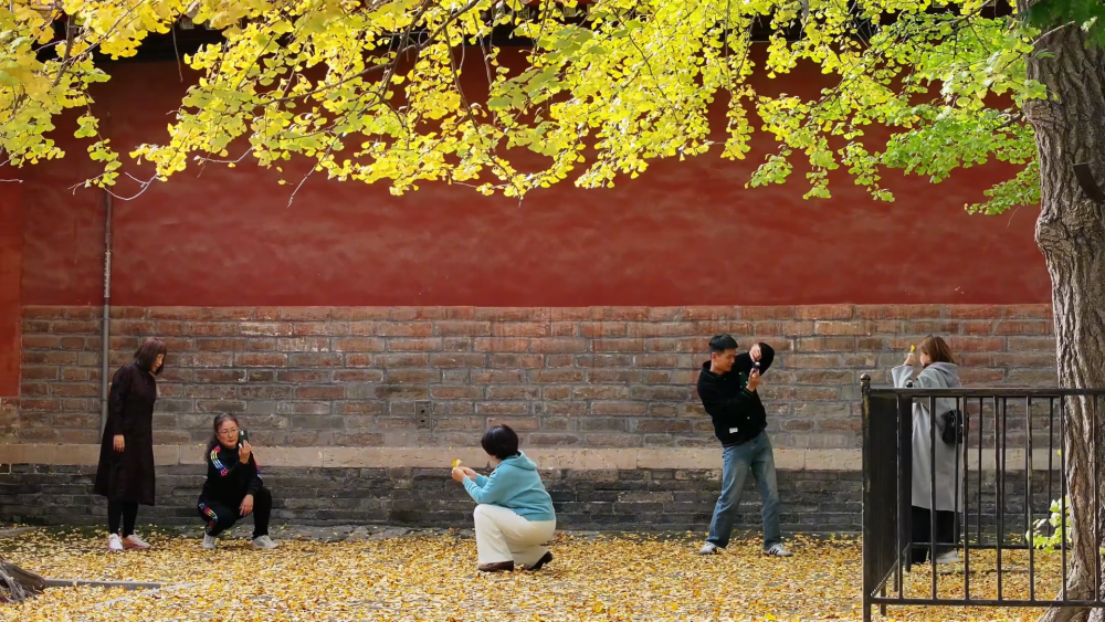初冬時節(jié),山東濟寧曲阜孔廟旁的半壁街鋪滿金色銀杏葉,慕名而來的游客絡(luò)繹不絕。