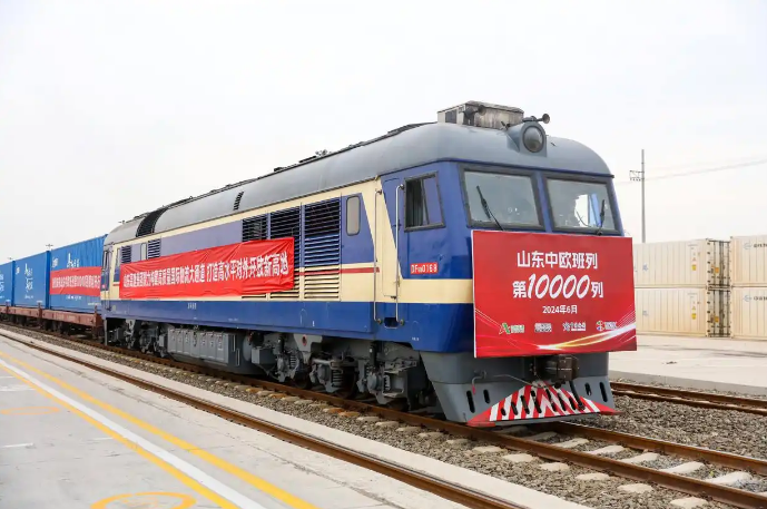 山東中歐班列從濟南董家鎮(zhèn)站駛出。圖片來源:新華社