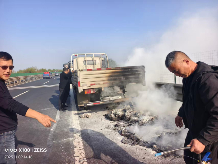 “要不是這兩位鄆城大哥,我們夫妻倆和一車貨物就全沒了!”11月10日,濟(jì)寧車主周女士提起日蘭高速上的驚險一幕,依然難掩激動。當(dāng)天,他們駕駛的小貨車突發(fā)自燃,熊熊烈火中,來自鄆城的張憲良、董亞兩位志愿者挺身而出,用15分鐘徒手撲滅火焰,在高速公路上上演了“烈火無情,人間有愛”的故事。