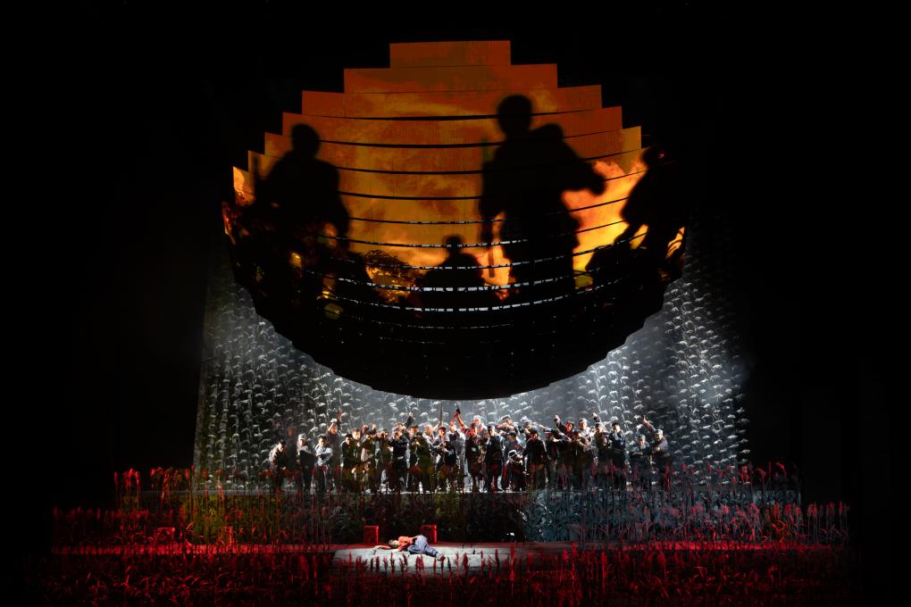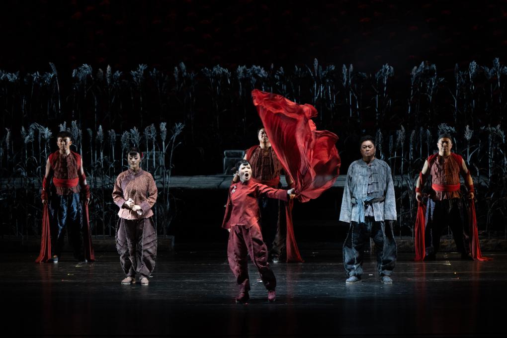 歌劇《紅高粱》以抗日戰(zhàn)爭時期山東高密鄉(xiāng)為背景,濃縮了九兒、余占鰲等普通人的愛恨糾葛與抗日史詩,從接親鬧劇到高粱地私語,從酒坊豐收到血色抗?fàn)帲藞鰟∏閷訉舆f進(jìn),將個體命運(yùn)與民族危亡緊密交織,生動再現(xiàn)了抗戰(zhàn)歷程中中華兒女的覺醒與堅守。
