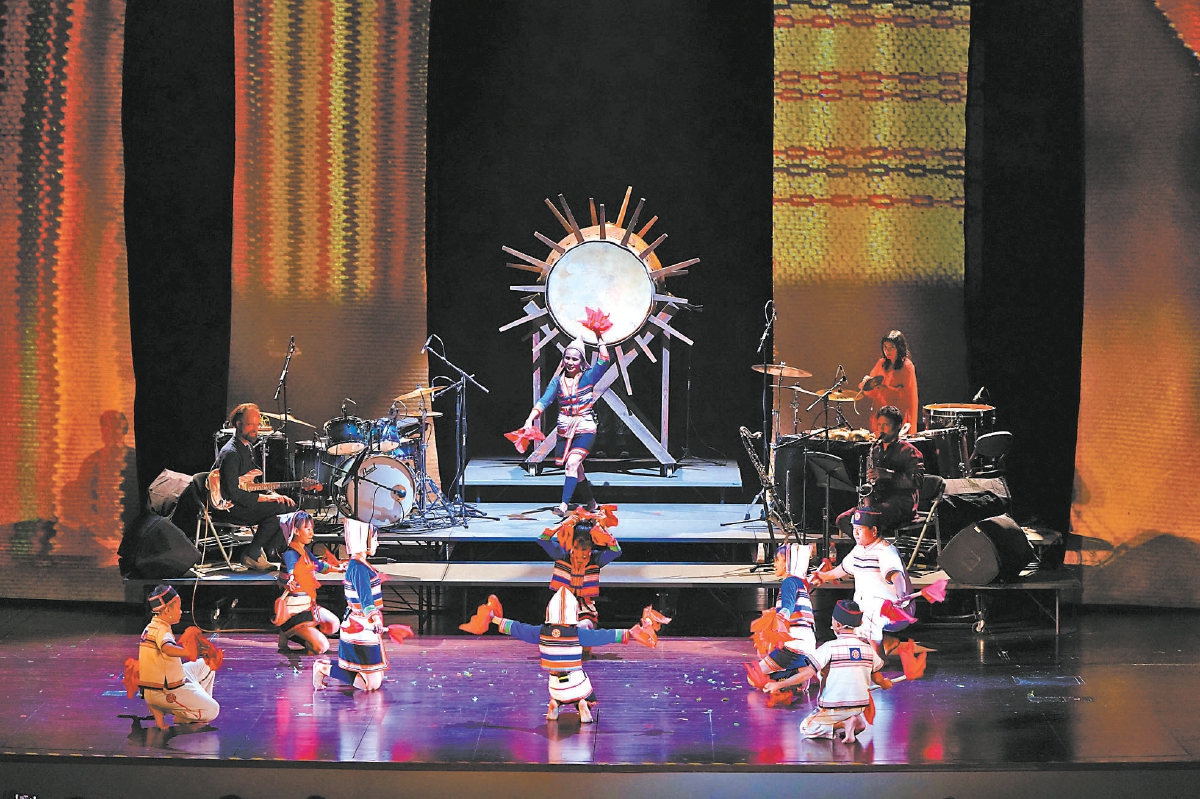 10月12日晚,一場將云南深山原始生命力融合跨越時(shí)空藝術(shù)想象力的演出登上北京舞臺。作為第二十八屆北京國際音樂節(jié)的重磅演出之一,由普利策音樂獎(jiǎng)得主、華人作曲家杜韻傾力創(chuàng)作,北京國際音樂節(jié)與美國林肯中心聯(lián)合委約的音樂劇場作品《刻在森林的海》在北京喜劇院世界首演。來自云南西雙版納的非遺項(xiàng)目基諾族大鼓舞傳承人何桂英,帶領(lǐng)8位基諾族少年,在舞臺上敲響大山里特有的聲音。