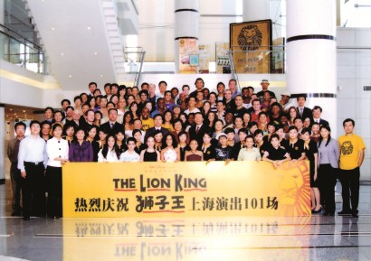 很巧的是,兩個(gè)月之后,我到香港開會(huì),居然被安排下榻在他們的迪士尼酒店。唐先生和助手特地趕來酒店找我,對(duì)我說:“好消息!總公司同意以迪士尼的名義,冠名贊助這次音樂劇演出。這樣一來,迪士尼總公司會(huì)支付你們80萬美金的冠名贊助費(fèi),也就是說,你們只要付給迪士尼公司20萬美金的版稅就可以了?!蔽乙凰?,100場(chǎng)演出支付版稅,相當(dāng)于一場(chǎng)演出只要支付1.6萬元人民幣的版稅,這對(duì)我們來說真可謂“雪中送炭”?。【瓦@樣,經(jīng)過差不多8個(gè)月的艱苦談判,2006年春節(jié)后,我們與迪士尼戲劇公司終于達(dá)成演出協(xié)議,中國也成為了除英美澳之外,第四個(gè)演出英文原版音樂劇《獅子王》的國家,這部魅力四射、精妙絕倫的音樂劇首次在中國上海與亞洲觀眾見面。《獅子王》在上海大劇院原本計(jì)劃上演100場(chǎng),為了打破《劇院魅影》的紀(jì)錄,又加演了一場(chǎng),總共演出101場(chǎng)。