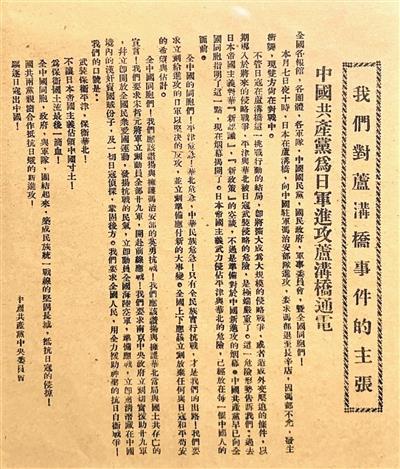 △《中國(guó)共產(chǎn)黨為日軍進(jìn)攻盧溝橋通電》
