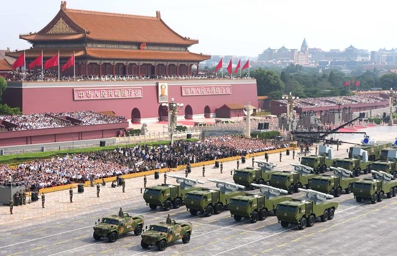 △2025年9月3日,紀(jì)念中國(guó)人民抗日戰(zhàn)爭(zhēng)暨世界反法西斯戰(zhàn)爭(zhēng)勝利80周年大會(huì)在北京隆重舉行。這是艦載防空武器方隊(duì)接受檢閱。