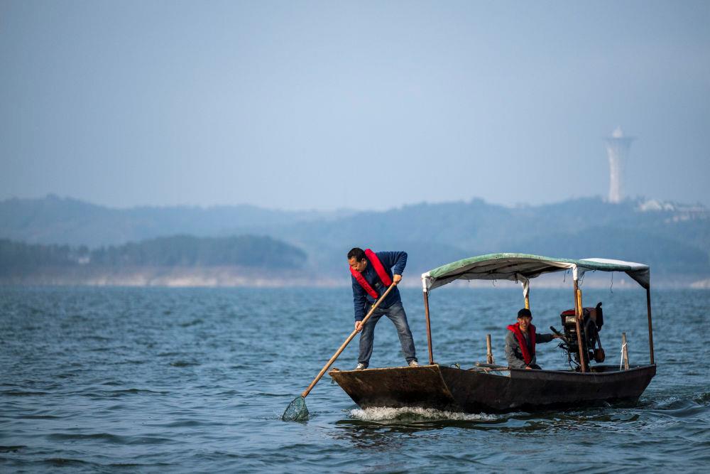 △2024年10月28日,湖北十堰丹江口清漂隊隊員在庫區(qū)進行清漂作業(yè)。2023年,丹江口成立“小水滴”守水護水志愿服務(wù)隊,越來越多人加入守水護水行列 。