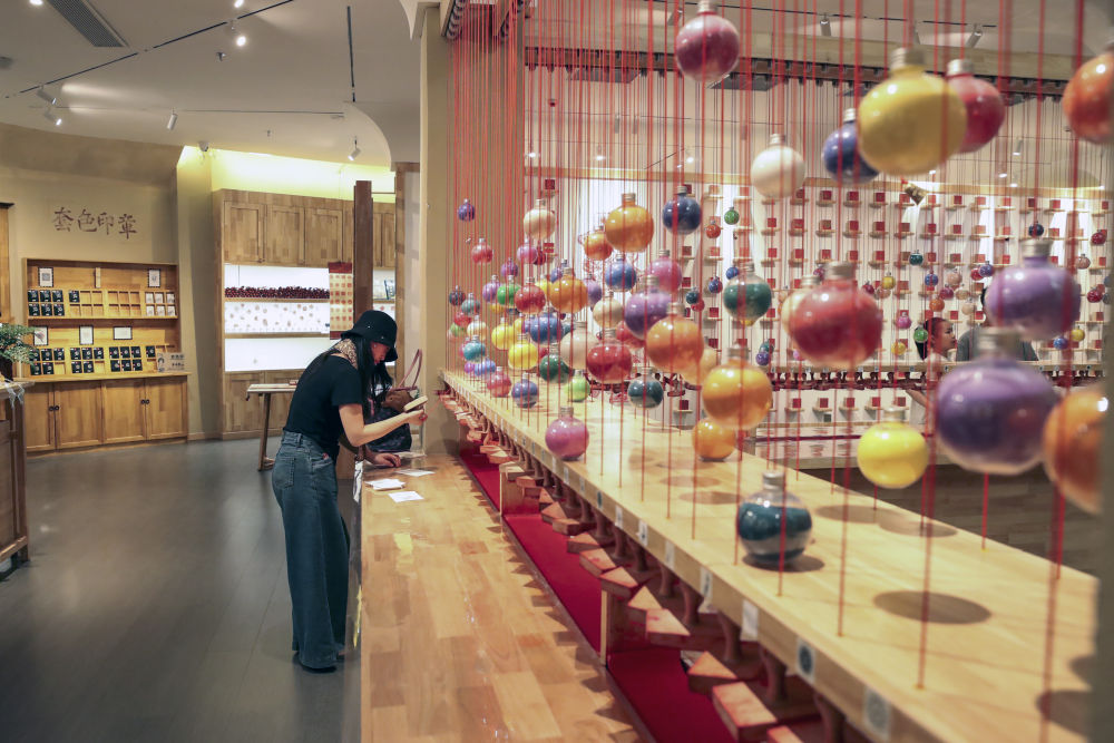2025年5月10日,游客在敦煌文旅新打卡地敦煌印局體驗(yàn)文創(chuàng)印章。