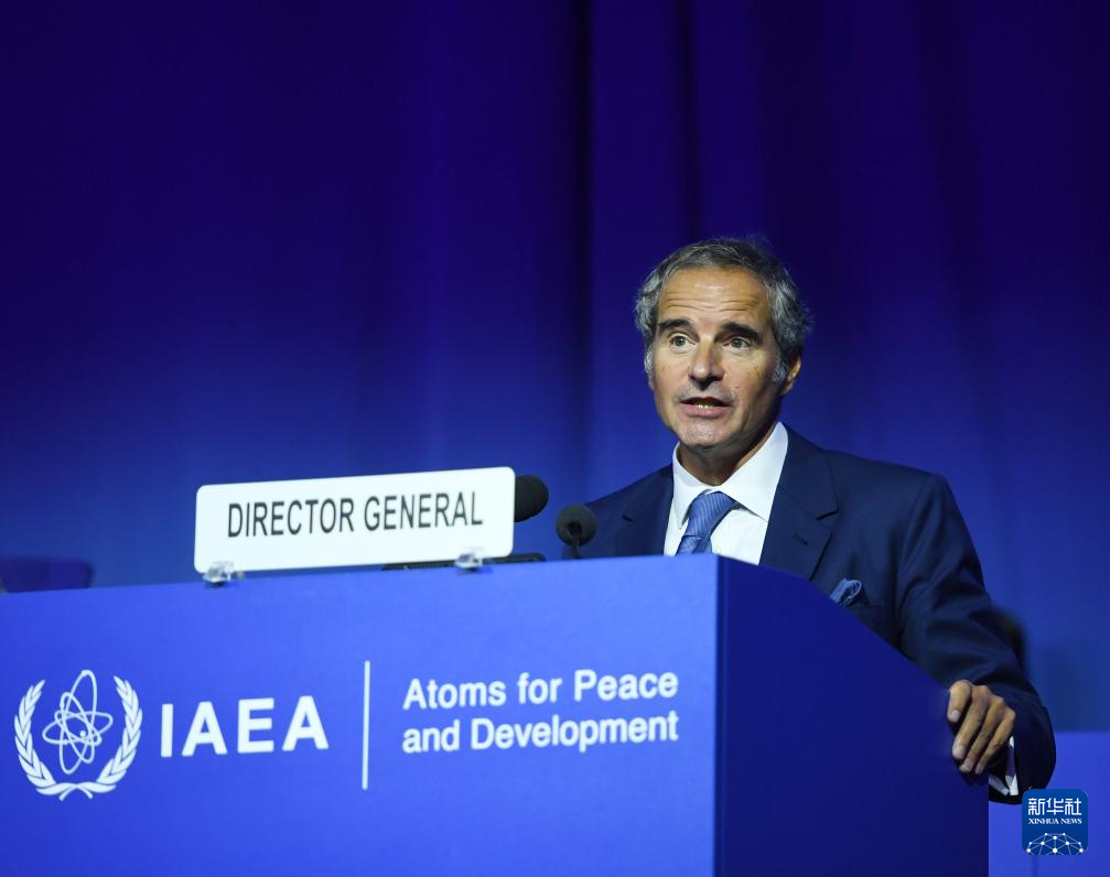 9月15日,在奧地利維也納,國際原子能機構(gòu)總干事格羅西在國際原子能機構(gòu)第69屆大會上致辭。新華社記者 賀燦鈴 攝