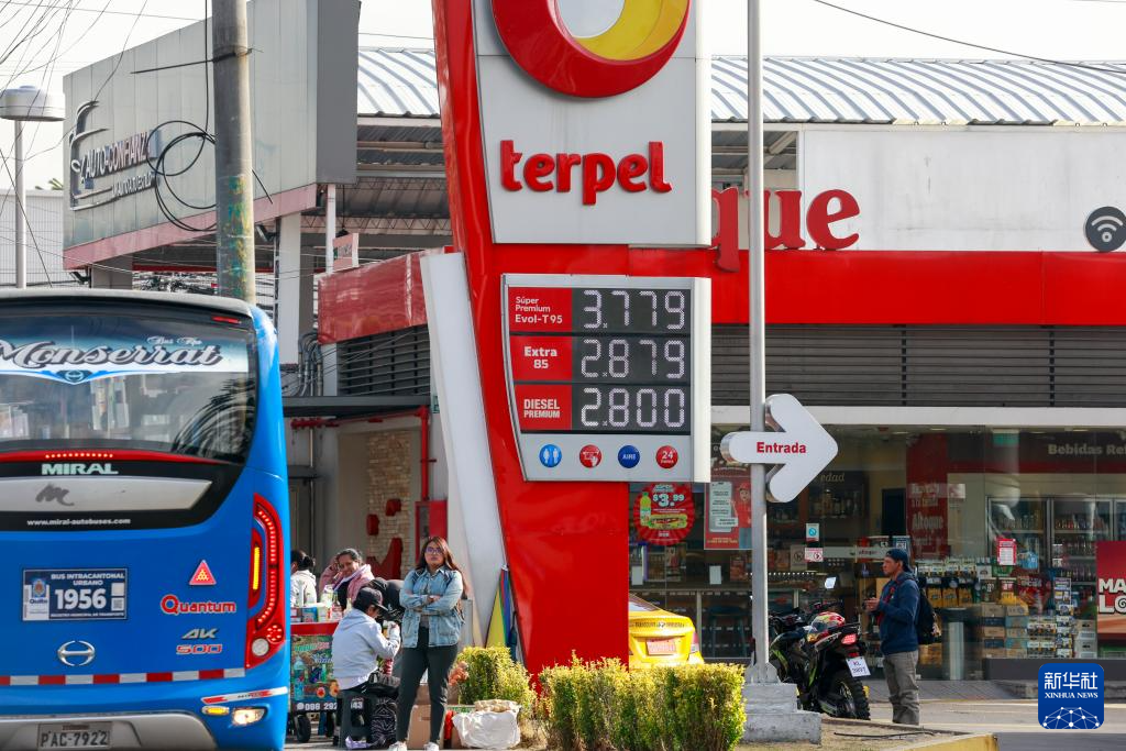 這是9月16日在厄瓜多爾首都基多拍攝的一處加油站的燃油價格顯示屏。新華社發(fā)(里卡多·蘭德塔攝)