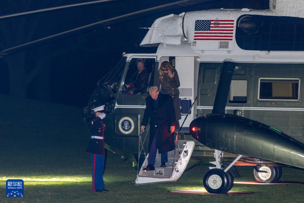 11月30日,在美國(guó)首都華盛頓白宮,美國(guó)總統(tǒng)特朗普和夫人梅拉尼婭返抵白宮。新華社記者 胡友松 攝