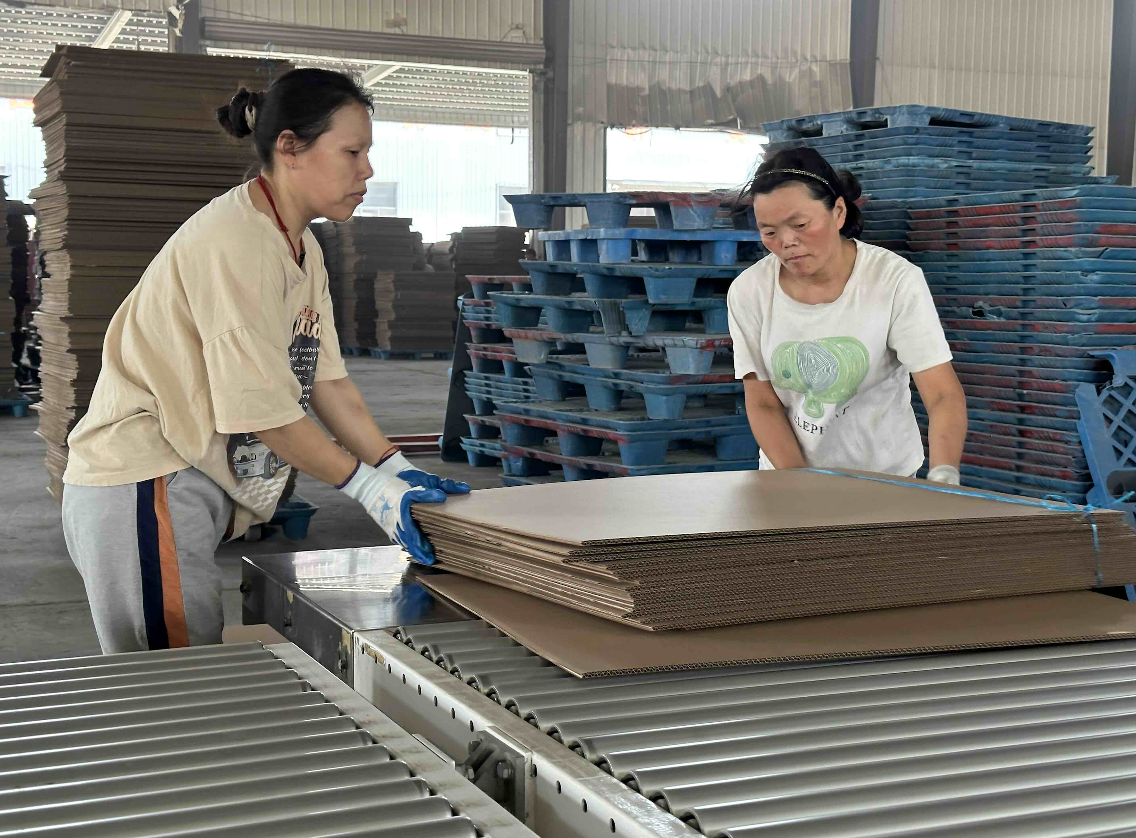 6月30日,在菏澤華融包裝有限公司生產(chǎn)車間內(nèi),工人正在進(jìn)行打捆作業(yè)。據(jù)悉,作為定陶區(qū)冉堌鎮(zhèn)包裝產(chǎn)業(yè)鏈的“鏈主”企業(yè),華融包裝不僅為魯花集團(tuán)、沙土食品等300余家企業(yè)提供包裝服務(wù),更帶動(dòng)周邊多家配套企業(yè)協(xié)同發(fā)展,形成完整產(chǎn)業(yè)鏈。目前,園區(qū)共提供就業(yè)崗位100余個(gè),其中70%為當(dāng)?shù)卮迕瘢屓罕妼?shí)現(xiàn)家門口就業(yè)增收。