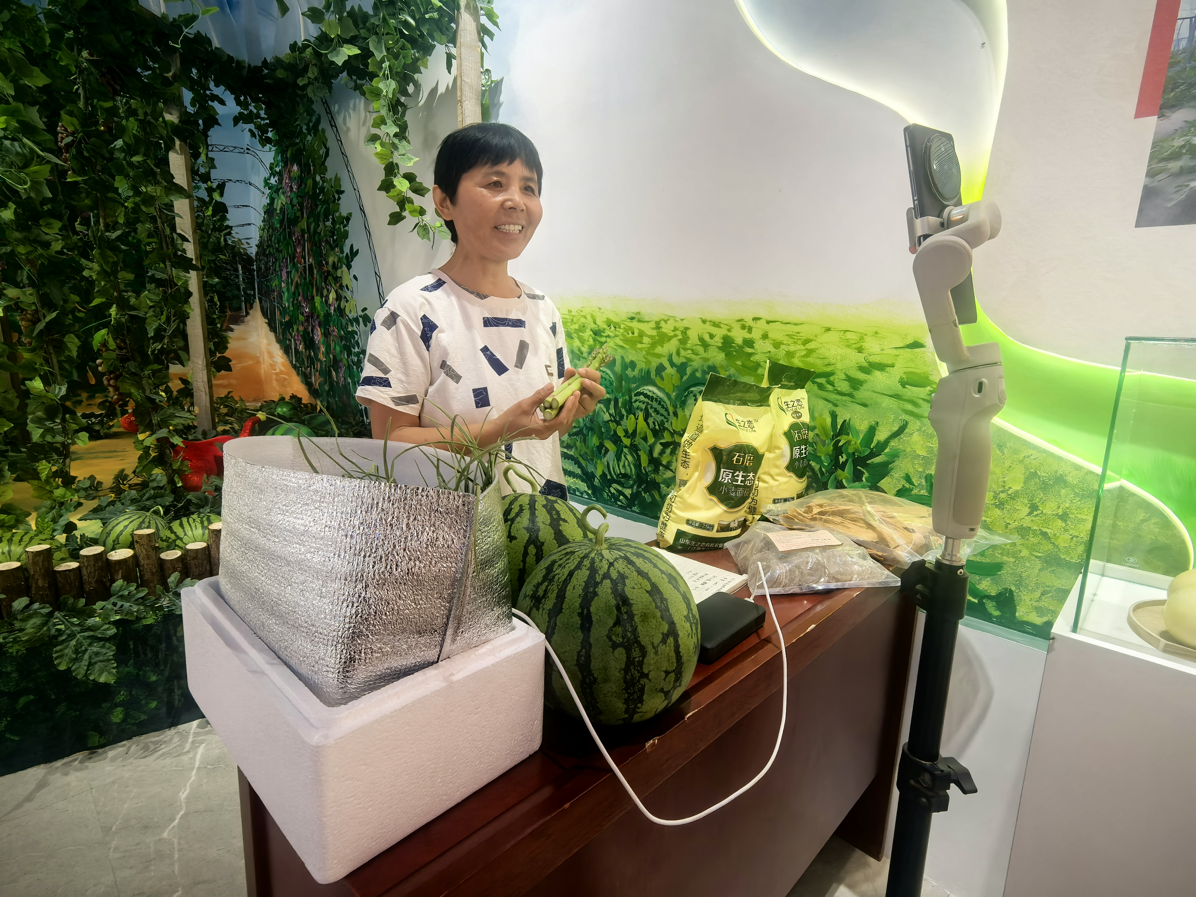 5月15日,在曹縣青崗集鎮(zhèn)江海村鄉(xiāng)村振興產(chǎn)業(yè)園內(nèi),瓜農(nóng)正通過直播推介本地西瓜。近年來,該村探索“規(guī)模種植+特色工藝品加工+文旅融合”三位一體發(fā)展模式,整合農(nóng)業(yè)、手工業(yè)與鄉(xiāng)村旅游資源,形成產(chǎn)業(yè)聯(lián)動(dòng)效應(yīng)。該村通過規(guī)模化發(fā)展西瓜、葡萄等特色水果種植,帶動(dòng)周邊村莊協(xié)同發(fā)展,不僅拓寬了農(nóng)產(chǎn)品銷路,助力村民增收,還為鄉(xiāng)村振興注入了活力。