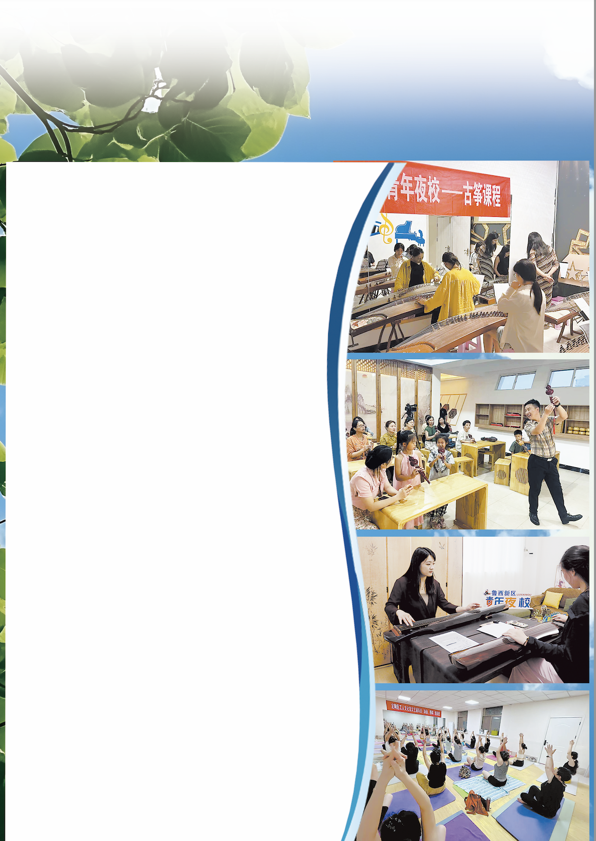 為提升年輕人綜合能力,豐富業(yè)余生活,助力他們健康成長、全面發(fā)展,魯西新區(qū)團(tuán)委向社會招募“青年夜?!焙匣锶耍步ǚ?wù)青年的平臺,陸續(xù)開設(shè)了古琴、竹笛、吉他等課程,供感興趣的年輕人報名。不管是學(xué)員還是老師,都為“青年夜?!钡拈_設(shè)叫好——這既擴(kuò)大了文化藝術(shù)的普及范圍,也讓文化服務(wù)更精準(zhǔn)、更實在,讓更多年輕人能在家門口“充電”。