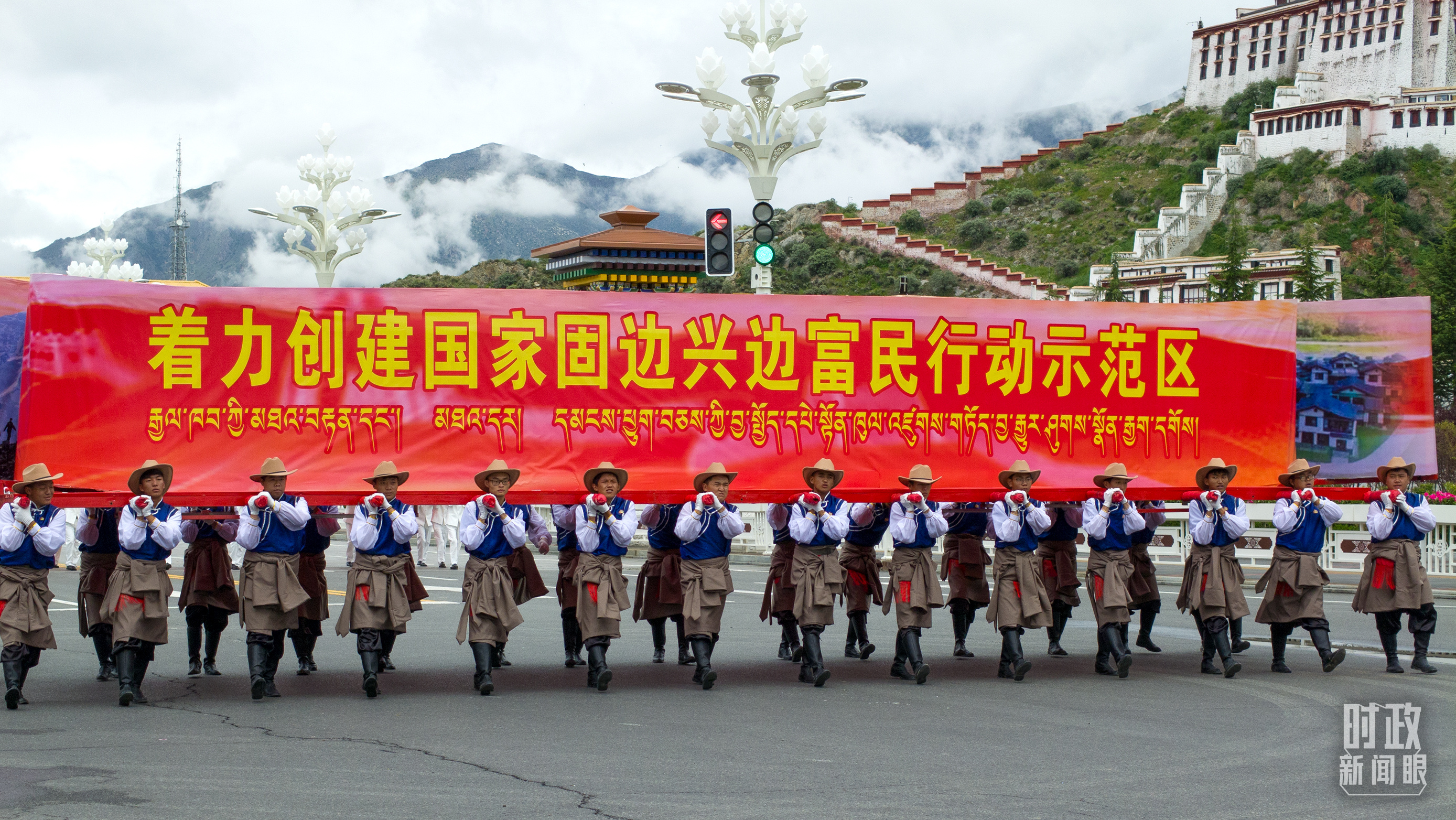 在慶祝大會的群眾游行環(huán)節(jié),“四件大事”單元展示了西藏自治區(qū)“四個創(chuàng)建”的奮斗目標:著力創(chuàng)建全國民族團結(jié)進步模范區(qū)、著力創(chuàng)建高原經(jīng)濟高質(zhì)量發(fā)展先行區(qū)、著力創(chuàng)建國家生態(tài)文明高地、著力創(chuàng)建國家固邊興邊富民行動示范區(qū),分別對應穩(wěn)定、發(fā)展、生態(tài)、強邊四件大事。