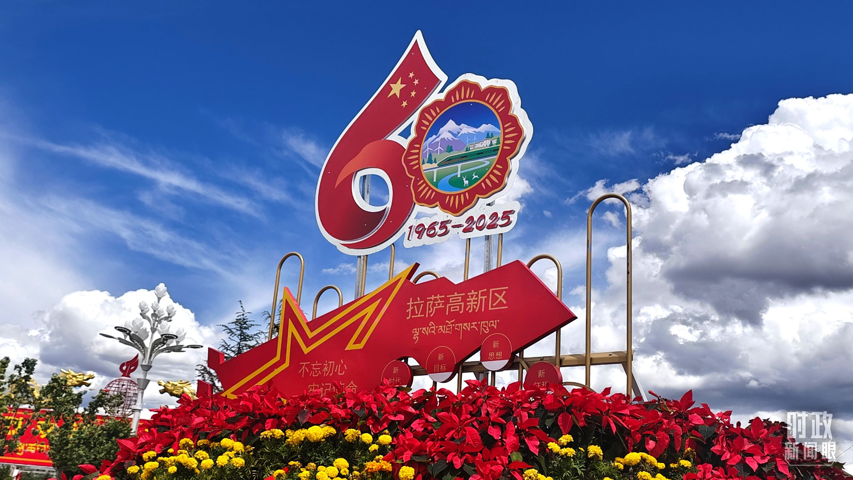 △西藏自治區(qū)成立60周年標識。(總臺央視記者韓銳拍攝)