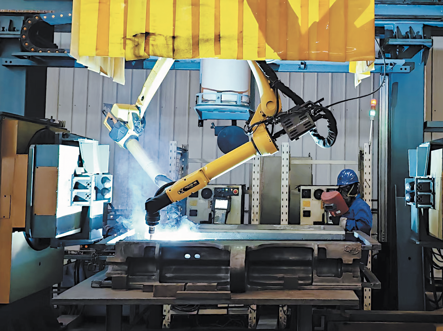 11月27日,單縣久鼎機(jī)械智能化生產(chǎn)裝備技改項(xiàng)目生產(chǎn)車間,智能化機(jī)械手臂正在進(jìn)行焊接作業(yè)。據(jù)了解,該技改項(xiàng)目總投資10.2億元,于今年3月啟動(dòng)實(shí)施,9月底完成并投產(chǎn)運(yùn)營。項(xiàng)目采用智能化設(shè)備共80余臺(tái)(套),設(shè)備更新率達(dá)到90%以上,大幅提升了企業(yè)產(chǎn)品創(chuàng)新研發(fā)和生產(chǎn)制造水平,產(chǎn)品附加值大幅提高,年可增加銷售收入15億元以上。